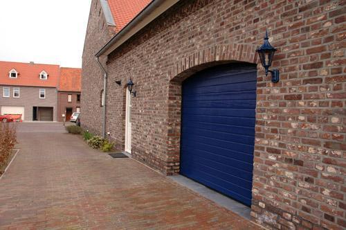Garagedeur met houtnerf in de bijzondere kleur RAL5013.