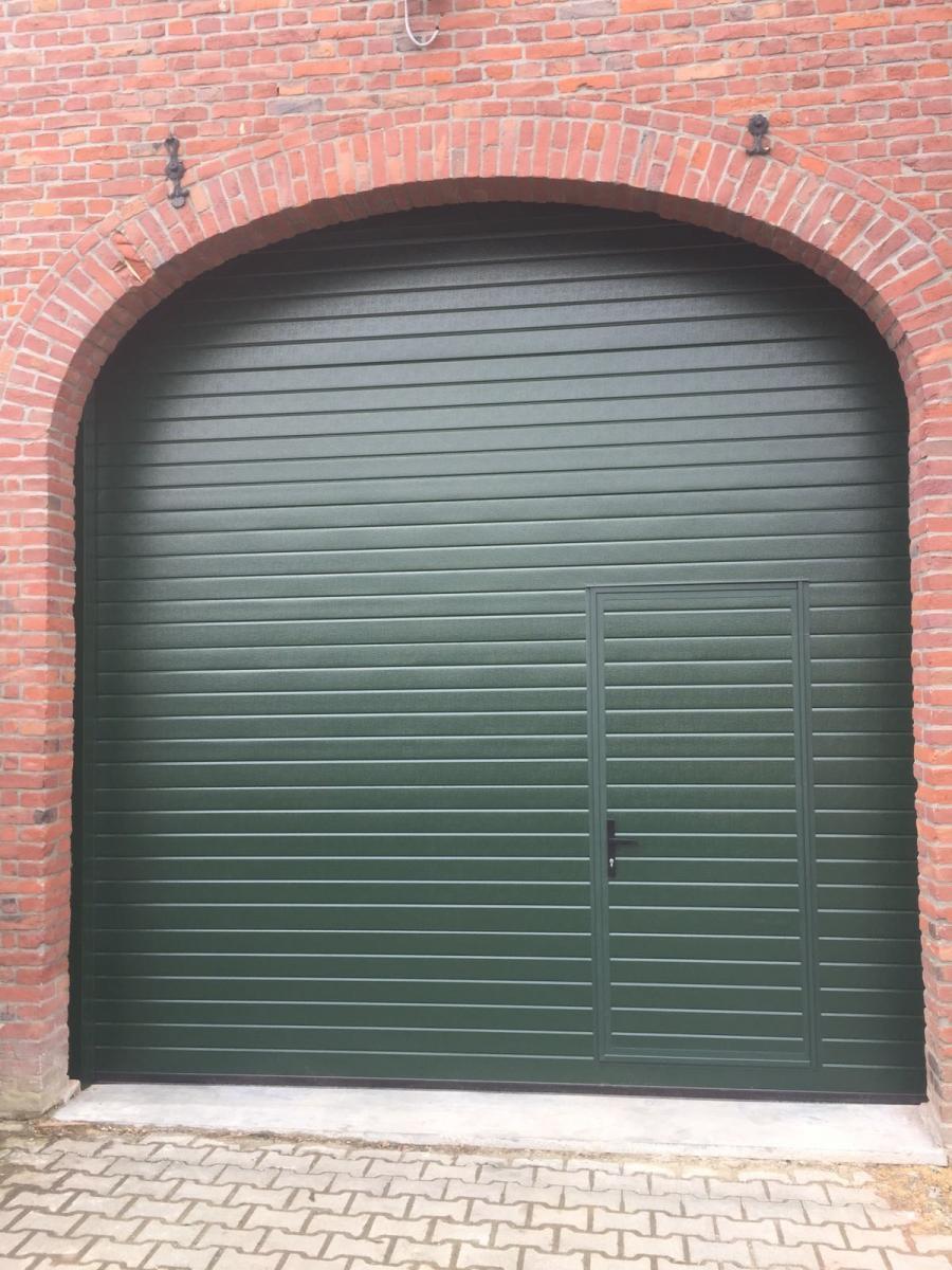 Industriedeur Stucco Gelijnd in RAL 6009 (groen) met loopdeur