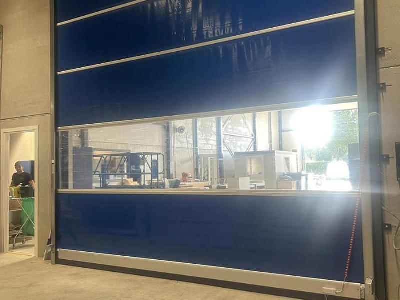 Deze snelloopdeur, geplaatst door Tinnemans Interieurbouw in Maasbracht, heeft een afmeting van 4800 mm breed en 5000 mm hoog. De deur is voorzien van een zichtvenster, wat zorgt voor extra zichtbaarheid en een lichtdoorlatende functie, ideaal voor werkruimtes waar zichtbaarheid belangrijk is. De snelloopdeur biedt niet alleen snelle en efficiënte toegang, maar is ook een praktische oplossing voor ruimtes die vaak in gebruik zijn. Met zijn robuuste constructie en moderne ontwerp is deze deur perfect voor verschillende industriële toepassingen.