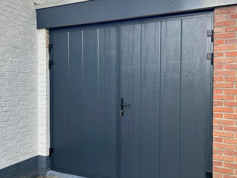 Deze vleugeldeur, geplaatst in Echt, heeft een houtnerf design met een verticaal gelijnde midrib, wat zorgt voor een stijlvolle en natuurlijke uitstraling. De deur is afgewerkt in de RAL kleur 7016, een moderne antraciet tint die perfect past bij verschillende gevels. Voor extra veiligheid is de deur voorzien van een 3-puntsluiting en optilbeveiliging, waardoor inbraakpreventie gegarandeerd is. Deze vleugeldeur combineert esthetiek met functionaliteit en biedt zowel een elegante uitstraling als uitstekende beveiliging voor uw woning.